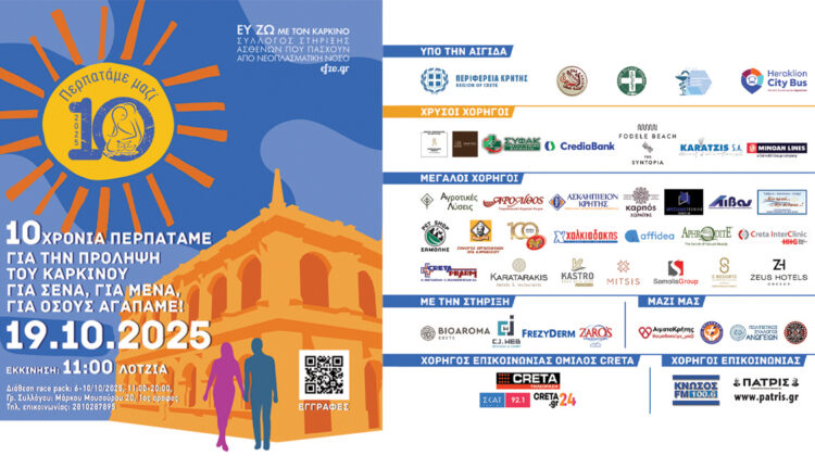 Την Κυριακή 19 Οκτωβρίου, η ομάδα μας βρέθηκε στο κέντρο του Ηρακλείου καλύπτοντας υγειονομικά την εκδήλωση «Ευ Ζω με τον Καρκίνο».